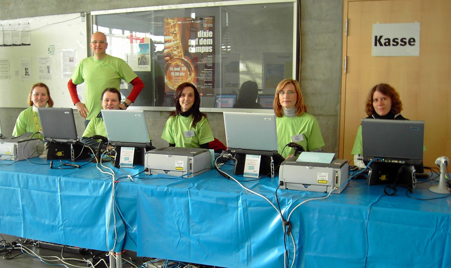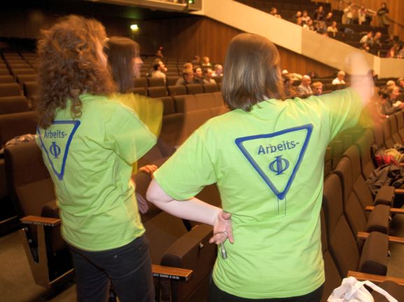 Die Organisator(inn)en der Tagung, Mitarbeiter(innen) des Tagungsbüros und studentischen Hilfskräfte tragen farbige Namensschilder und Ф-T-Shirts. Sie stehen Ihnen als Kontaktpersonen für Fragen zur Verfügung.